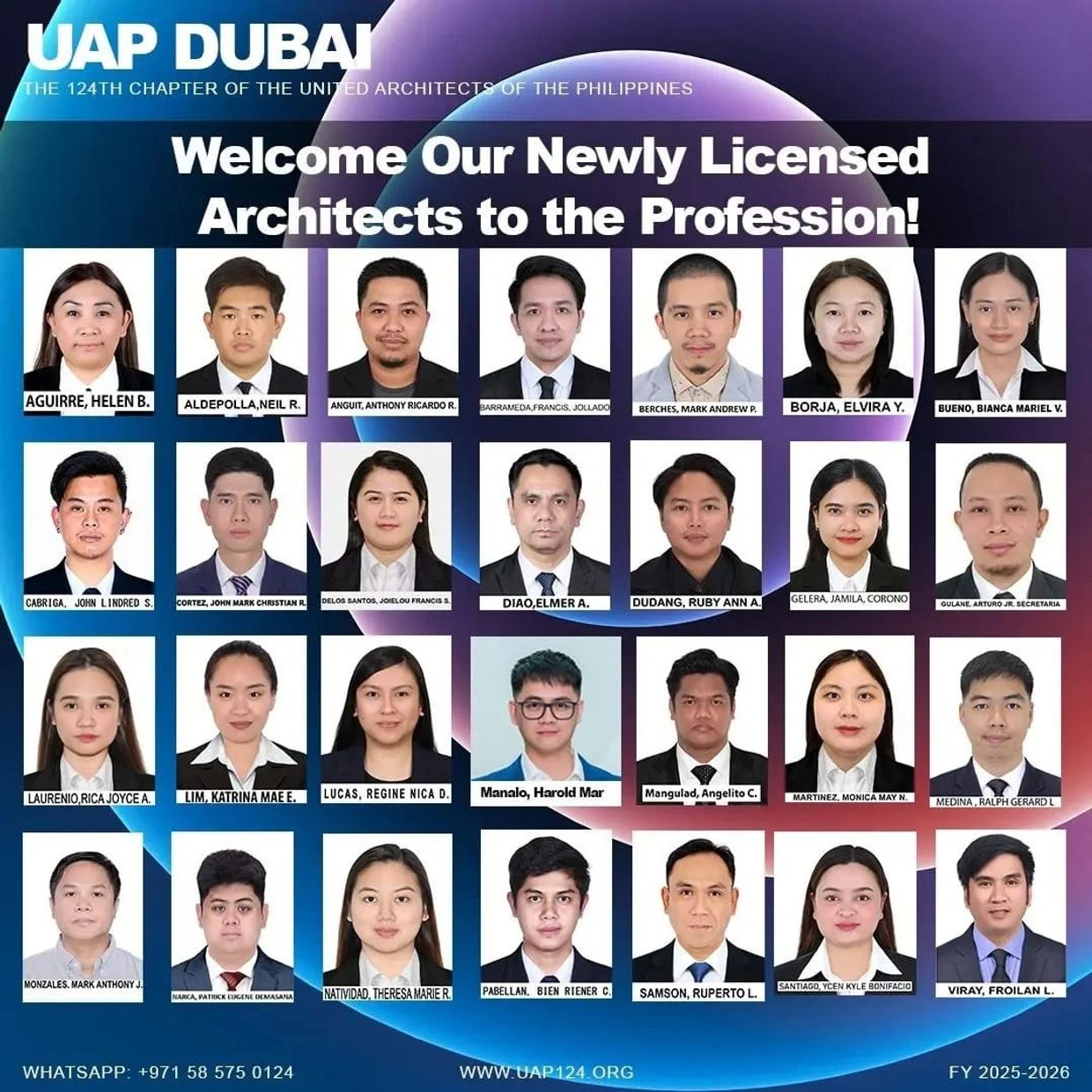 On August 24, the UAP Dubai Chapter and the Philippine Consulate General in Dubai honored 31 newly licensed Filipino architects at the SPLE–FLEA Gala 2025.
